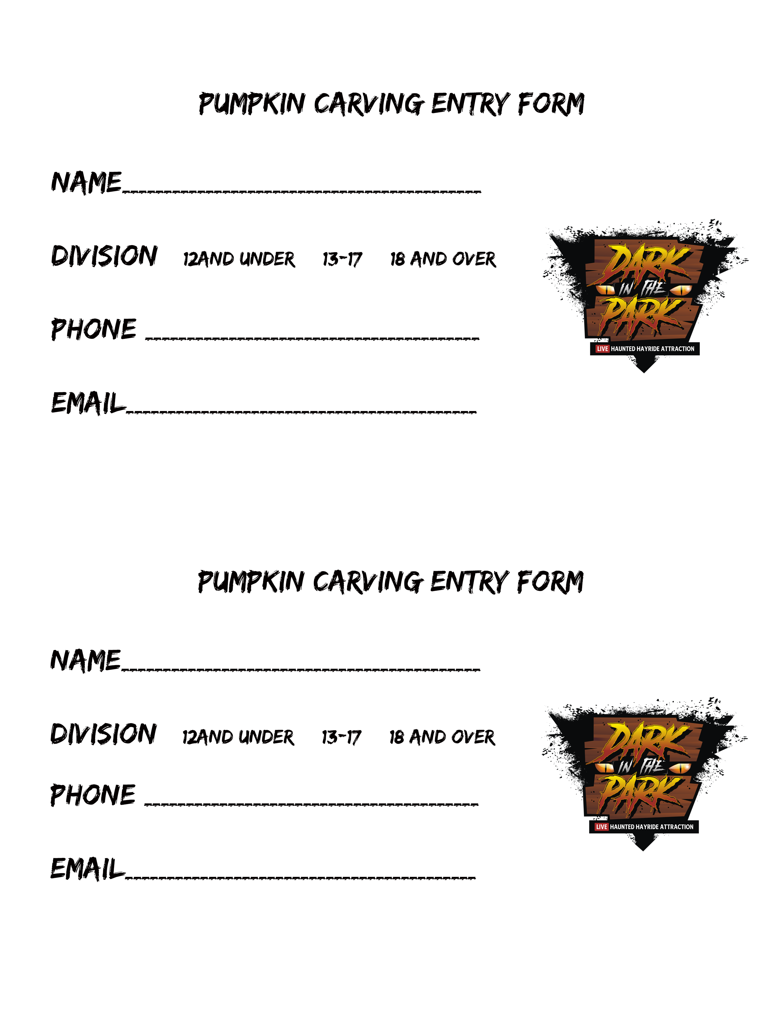 Enter our new Pumpkin Carving Contest!  Details can be found HERE and you can fill out an entry form on site or bring one with you!